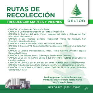 Anuncia Deltor rutas de recolección y llama a ciudadanía a estar pendiente