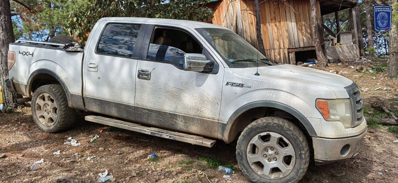 En ese lugar, los participantes del operativo tuvieron a la vista una pick up marca Ford, color blanco, de cuatro puertas, con placas de circulación del estado de Chihuahua, la cual se encontraba abandonada a un costado de la brecha.