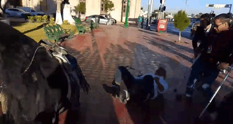 Azota Lozoya con todo y caballo frente a palacio de gobierno