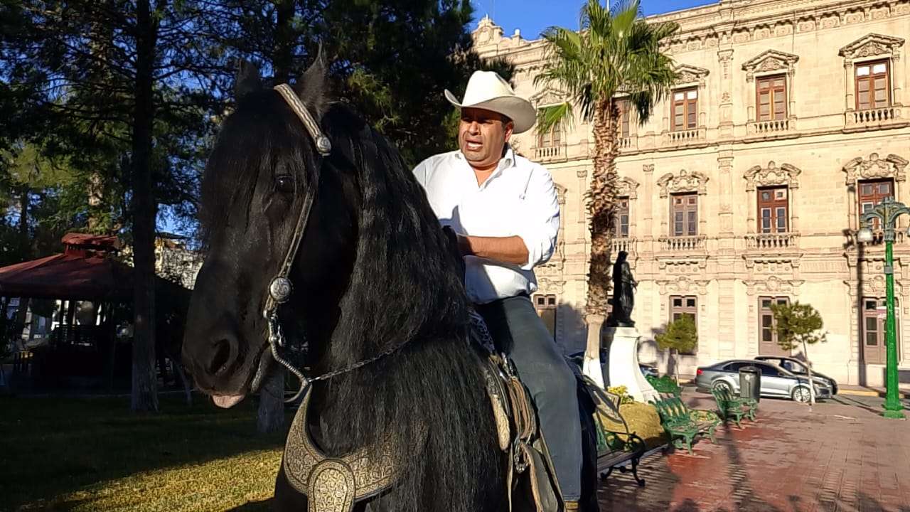 Azota Lozoya con todo y caballo frente a palacio de gobierno