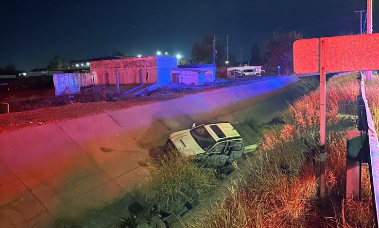 Una camioneta quedó con daños cuantiosos después de caer a un canal minutos después de la medianoche de este domingo en el sector norte de Delicias, justo donde se encuentra la carretera a Ortiz, por lo que el hecho generó la movilización inmediata de los cuerpos de emergencia que fueron alertados mediante llamadas al sistema 911.