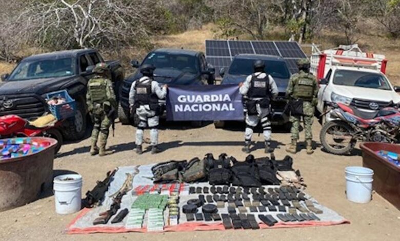 Elementos de la Guardia Nacional y el Ejército mexicano aseguraron en dos eventos distintos un arsenal y 330 kilogramos de droga sintética en la localidad Las Trincheras, ubicado municipio de Huetamo, Michoacán.