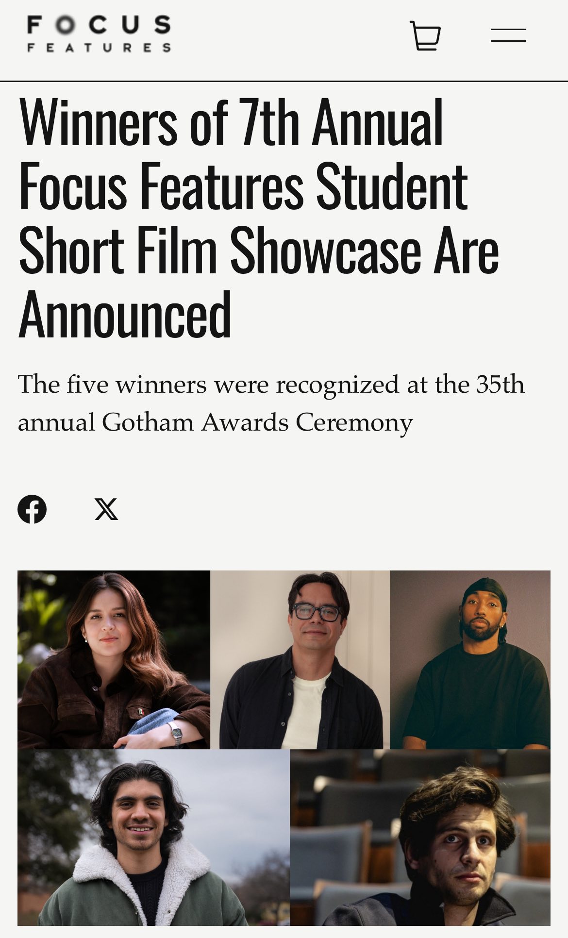 “Este premio ofrece una oportunidad única e increíble de acceder a la industria y cada cineasta seleccionado recibirá una beca de 2,000 dólares, al igual que tendrá la oportunidad de proyectar su película en la plataforma de streaming digital de Focus Features durante 12 meses”, comentó el actor.
