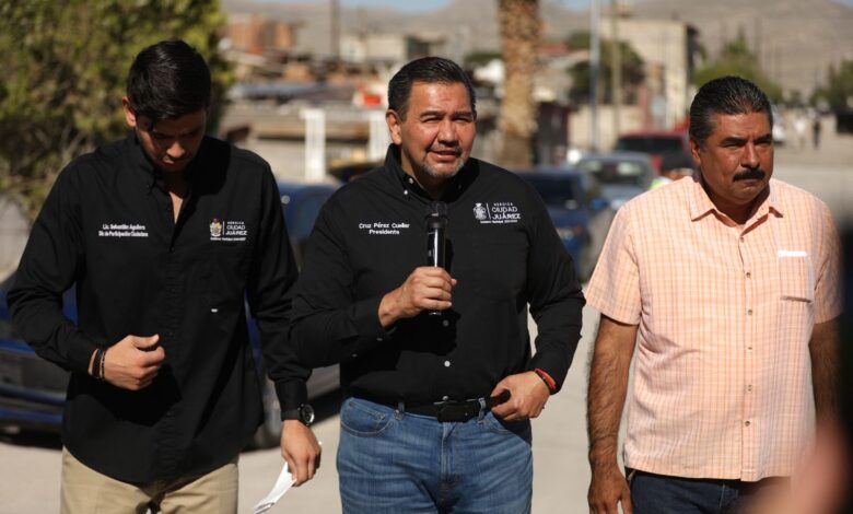 Ciudad Juárez.- El Presidente Municipal, Cruz Pérez Cuéllar, encabezó la entrega de las obras de pavimentación de la calle Cisne, ubicada en la colonia Granjas de Chapultepec, una obra realizada a través de la unión de los vecinos por medio del Presupuesto Participativo.