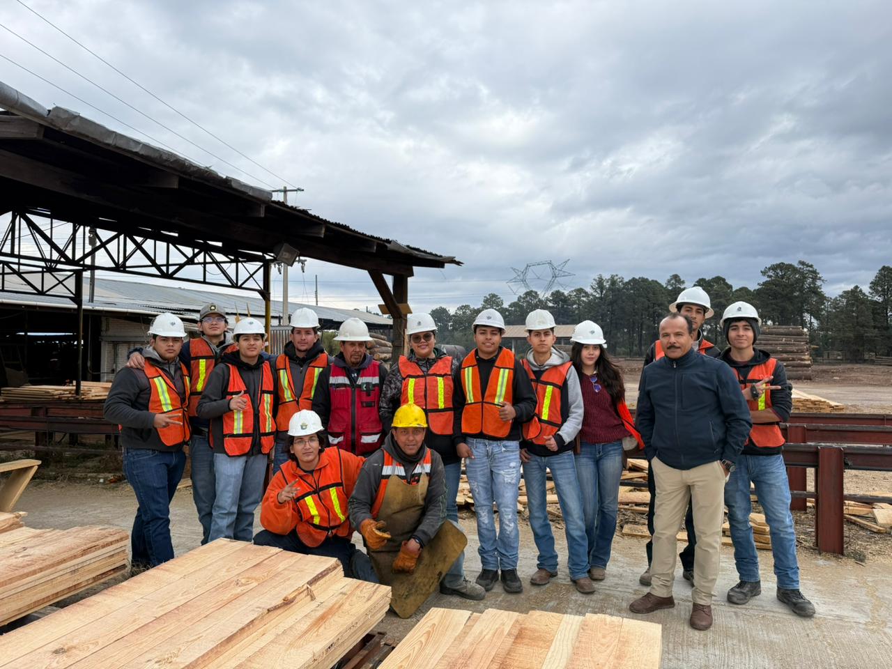 Como parte del recorrido, el grupo de la UACH visitó el aserradero del ejido La Victoria, para observar el flujo operativo del aprovechamiento forestal y los procesos de transformación primaria de la madera. Posteriormente, se trasladaron al área de conservación Santa Bárbara, en el Ejido El Brillante, donde investigadores del ITES guiaron una práctica de botánica forestal enfocada en la identificación de especies y su relevancia ecológica.