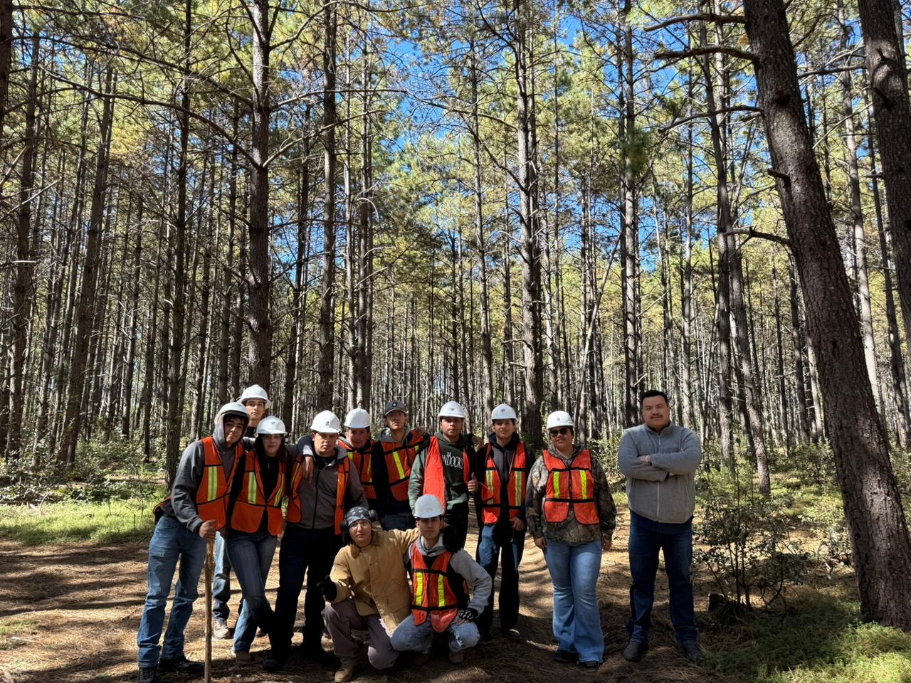 La visita concluyó en el ejido La Ciudad, donde, con el apoyo del Dr. José Encarnación Luján Soto, los estudiantes conocieron diversos tratamientos silvícolas, entre ellos cortas de regeneración por el método de cortas totales, cortas por el método de árboles padres, cortas por selección individual y ensayos de aclareo en parcelas de monitoreo permanente.