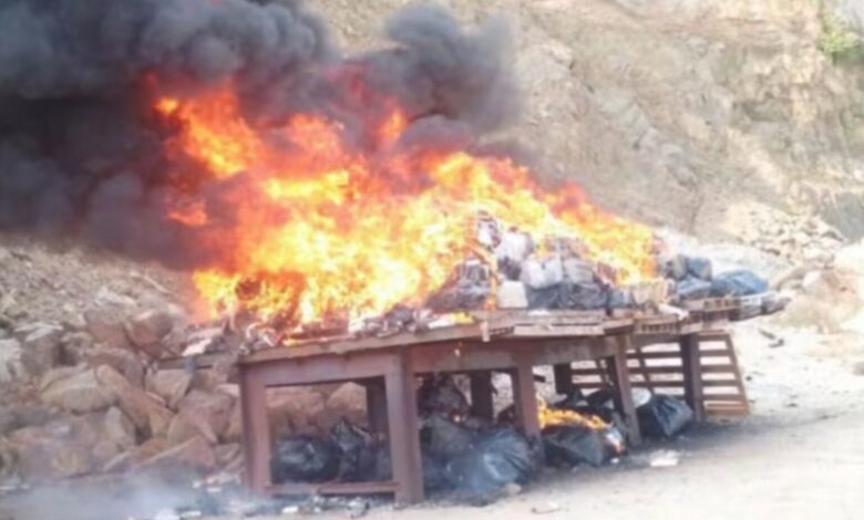 Autoridades federales realizaron la incineración de casi cinco toneladas de clorhidrato de cocaína en Acapulco, Guerrero.