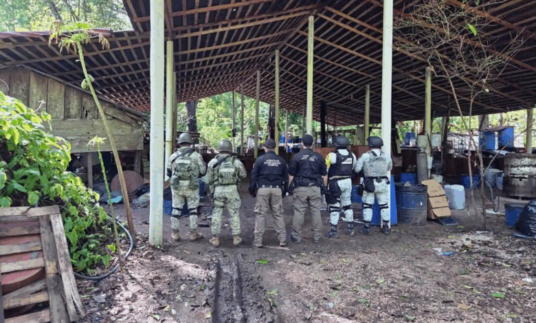 Inhabilitan laboratorio en Palenque, Chiapas; aseguran 900 kilogramos de metanfetaminas