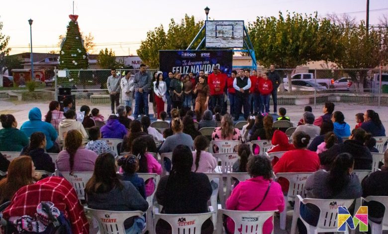 Meoqui.- Con un ambiente de alegría, convivencia familiar y espíritu navideño, la alcaldesa de Meoqui, Miriam Soto, dio inicio a las posadas navideñas en las comunidades del municipio, siendo la primera en Las Puentes, esto en coordinación con el DIF Municipal y la Presidencia Seccional de Guadalupe Victoria, la cual incluyó el encendido del árbol navideño, música, juegos, piñatas y dulces para niñas y niños.