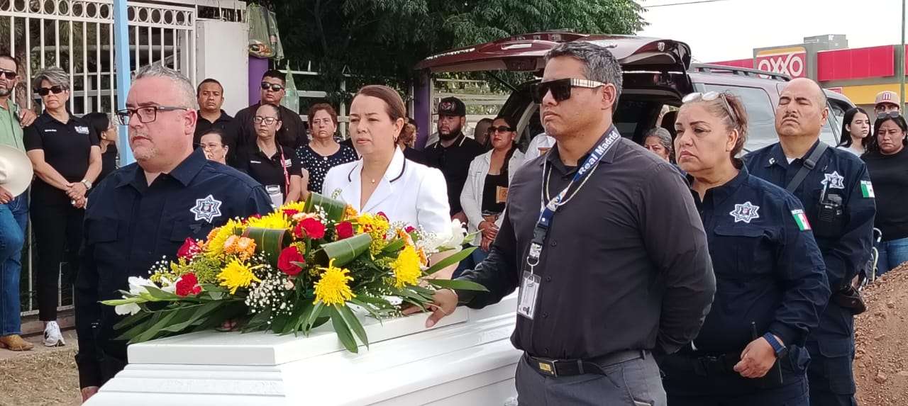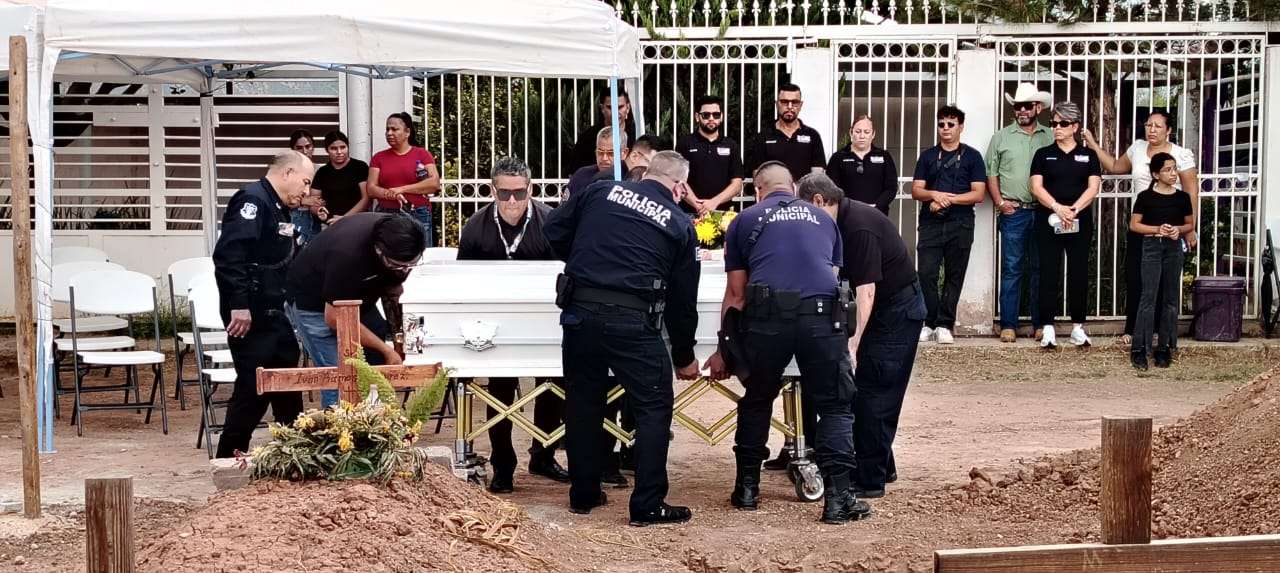 Hubo guardia de honor, pase de lista, salvas y también se encendieron las sirenas de dos patrullas, para finalmente se llevado a su última morada.