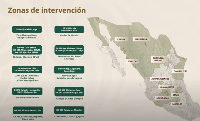 En el marco de la Conferencia de Prensa de la Presidencia de la República fue precisado que están licitadas acciones en dos distritos de riego en Chihuahua, el 09 correspondiente a Juárez y el de la región de Delicias, el 05.