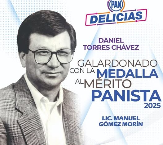 Militante de la llamada «vieja guardia», exrecaudador de rentas durante el Gobierno de Pancho Barrio y exregidor en el Cabildo de Delicias, además por su trabajo en pro de su partido, el PAN premiará este año al licenciado Daniel Torres Chávez con la Medalla al Mérito Panista «Manuel Gómez Morín» 2025.