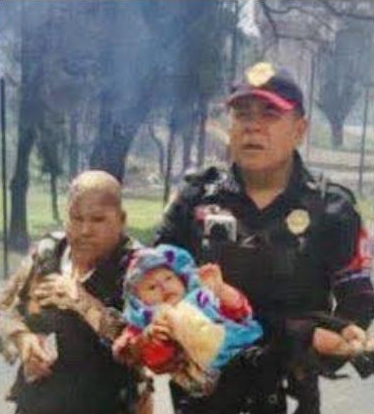 En imágenes, ella fue captada sosteniendo en brazos a su nieta, a pesar de las que llamas devoraron su cabello, primeras capas de piel y parte de su ropa.