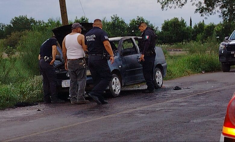 Una intensa movilización se registró esta tarde de jueves en el camino que conduce del Salado hacia la colonia Terrazas, luego de que se reportara el incendio de un vehículo de la marca Volkswagen que circulaba en sentido de oriente a poniente y que, al momento de pasar las vías del ferrocarril, comenzó a arder.