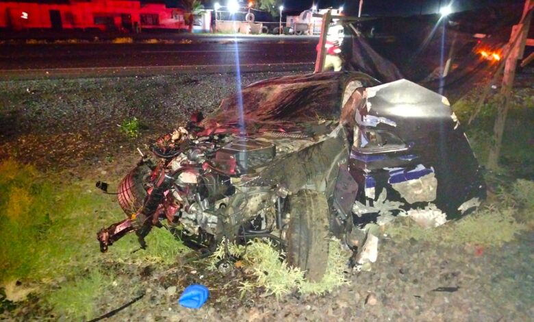 Una aparatosa volcadura registrada la madrugada de este domingo dejó completamente destrozado un vehículo tipo Mustang, el cual terminó convertido en fierros retorcidos a un costado de la carretera federal, entre los kilómetros 132 y 131, metros más adelante de la caseta de la Guardia Nacional.