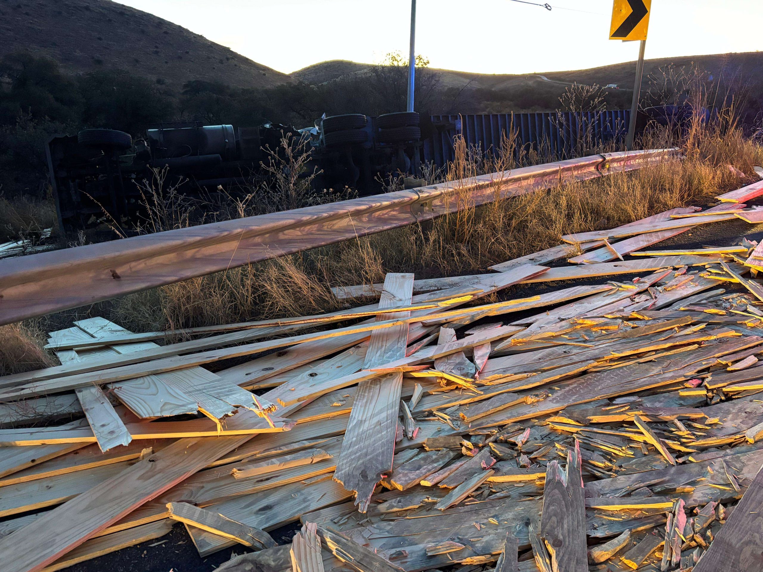 Vuelca tráiler cargado con madera en carretera libre a Juárez; hay 1 muerto
